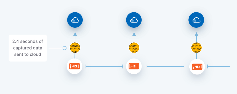 After an ADI OtoSense™ Smart Motor Sensor (SMS) device is attached to a motor, the device begins transmitting data from its on-board sensors to the ADI OtoSense™ Cloud. At regular intervals, the SMS device sends a 2.4 second sample of all sensor data (see Figure 1).