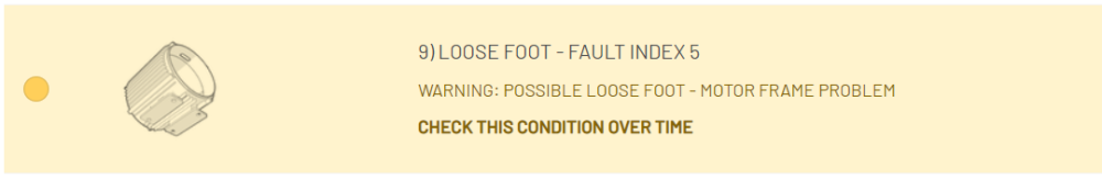 Loose Foot | Mechanical | Structural looseness occuring when the motor base (or connection to the motor base) is not properly tightened. | Motor not fixed to base frame |