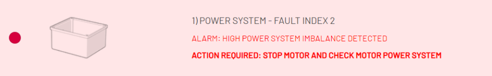 Figure 6: Power System Fault Index 2 and Suggested Remediation Action on the ADI OtoSense™ Cloud Dashboard
